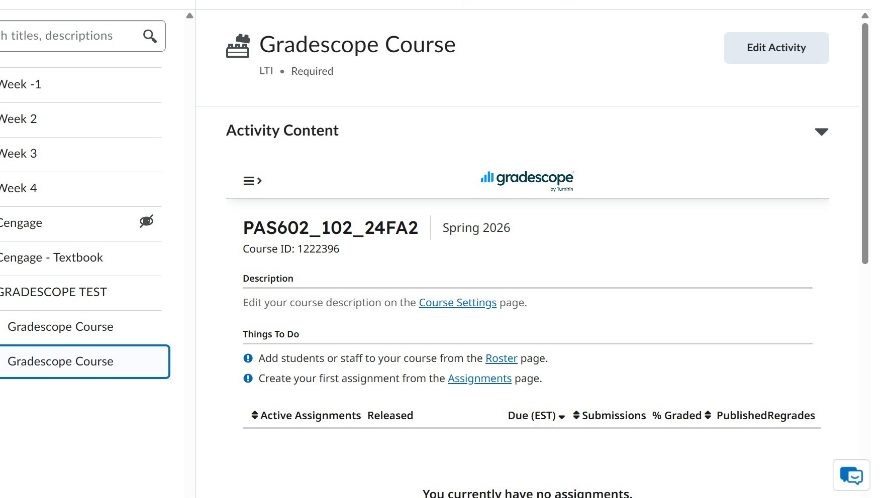 9. Gradescope course will now appear.
