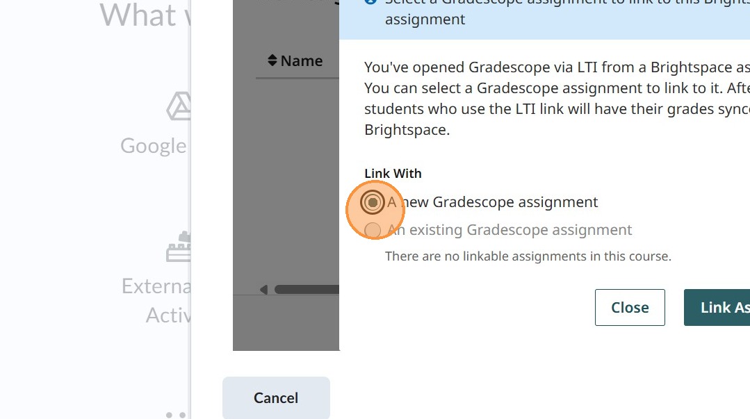 1. Creating a link in the Brightspace course directly to a Gradescope Assignment