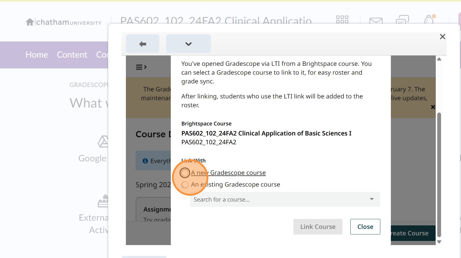 7. Click "Gradescope Course"